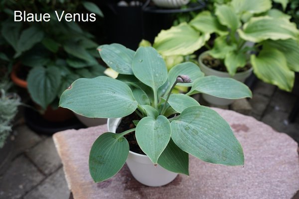Rozmiar D/S wedle danych rejestracyjnych dorasta li tylko do 10 cm przy 25 cm szerokości Liście: niebiesko zielone, matowe, jajowate (około 8 x 5 cm), dobrej substancji Kwiaty: jasnolawendowe (VII/VIII) Zalecane stanowisko: półcień/cień