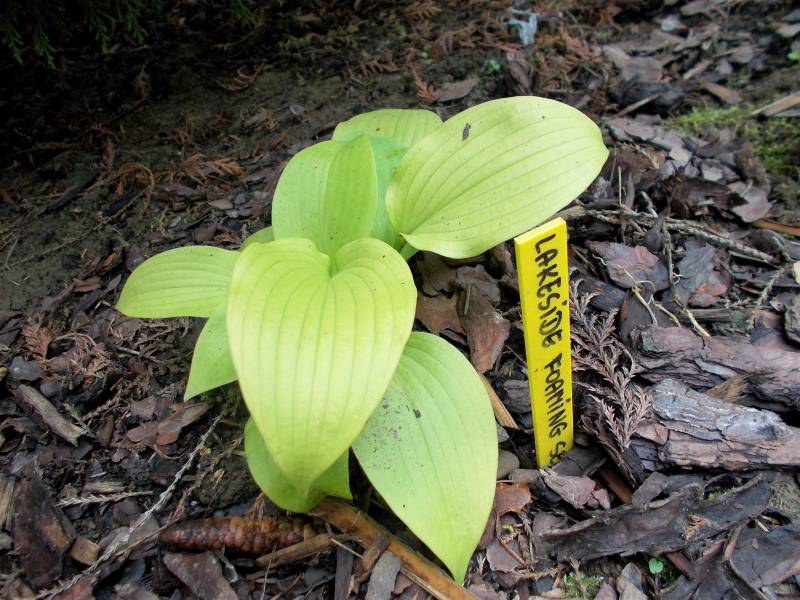 Rozmiar M (wysokość do 45 cm ) Liście - jasnożółte , dobrej substancji, lekko pofałdowane Kwiaty - jasnolawendowe Stanowisko - od słońca do cienia Wzrost - średni do wolnego