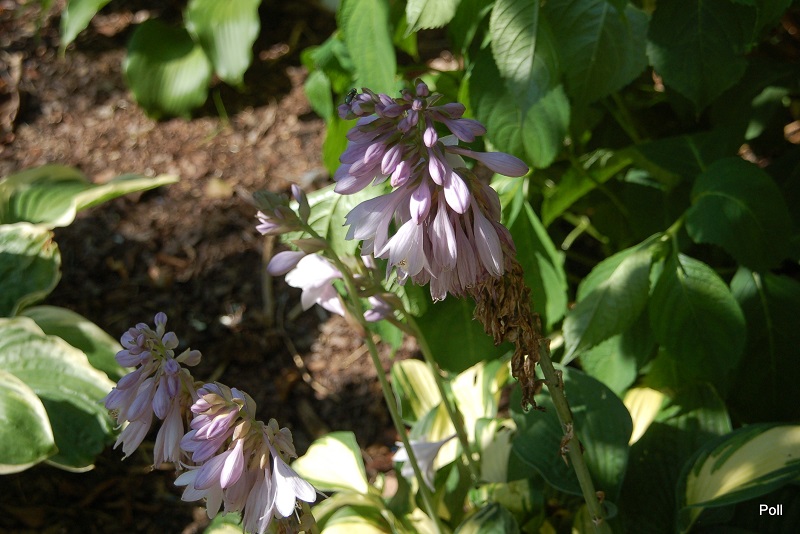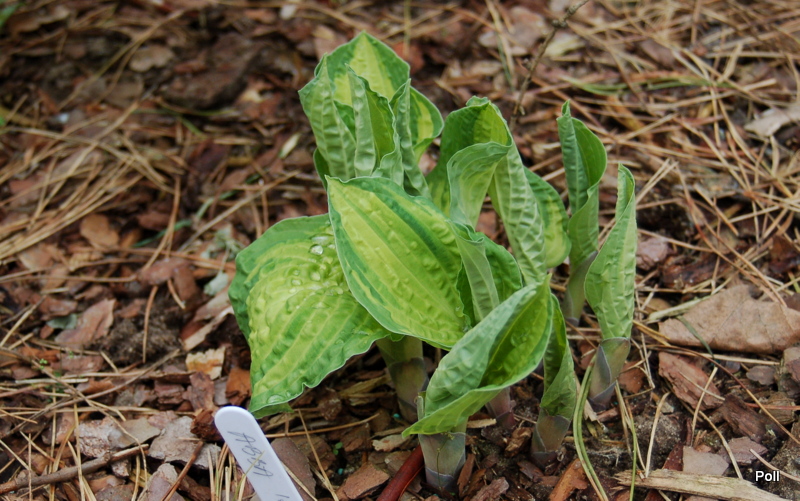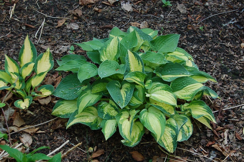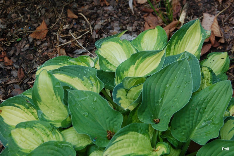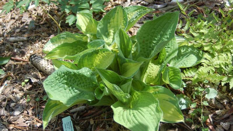 Rozmiar M (wysokość 30-40cm) Liście podłużne, żółty środek, zminaijący w ciagu sezonu barwę do białego, okolony jest ciemnozielonym, szerokim marginesem. Kwiaty lawendowe, kwitnie w lipcu Zalecane stanowisko: cień do półcienia