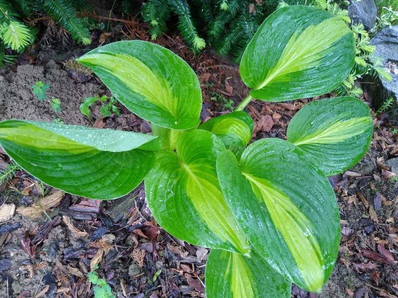 Hosta Broad Street, rośnie w moim ogrodzie od 3 lat. Stanowisko ma bardzo wilgotne, wręcz bagniste, ale z dużą dawką promieni słonecznych w południe