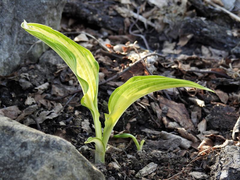 Hosta Cool as a Cucumber zeszłoroczny zakup. Rośnie pod krzewem liściastym, więc wiosną więcej ma słonka, a potem cień.