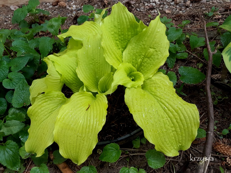 Hosty 'Dancing Queen' nie posiadam, ale pokażę jej pięcioletnie siewki, uzyskane po selekcji. Bardzo przyzwoicie przyrastają i wszystkie mają falbankę. Polecam jej siew,m zwłaszcza z nasion od Moniki (th -