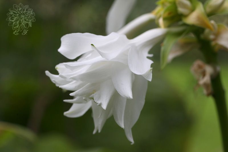 Rozmiar L wysokość 55-65cm Liście owalne, zielone, błyszczące z wierzchu, wyraźnie żebrowane Kwiaty pełne, duże, białe, pachnące, kwitną w sierpniu, wrześniu Zalecane stanowisko półcień