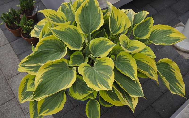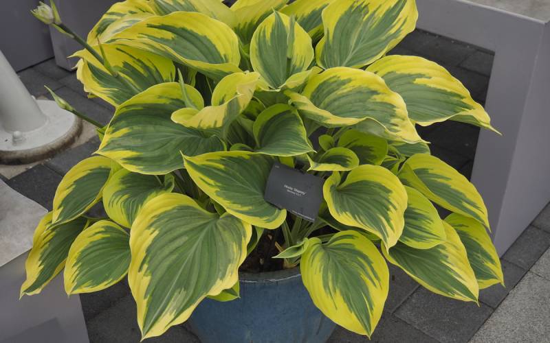 Duża funkia o pięknych wyraźnych kolorach podobna do hosty Liberty, czy Magic Fire