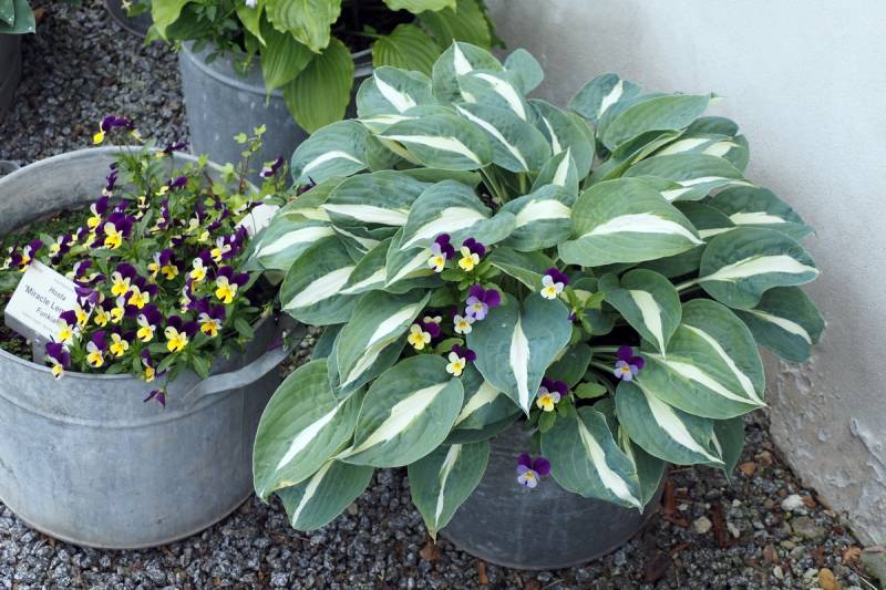 Rozmiar: ML wielkość około 50-55 cm Liście: sercowate, ciemnozielone z białym centrum i lekkimi naciekami w jasnozielonym kolorze Kwiaty: jasnolawendowe (VII) Zalecane stanowisko: od półcienia