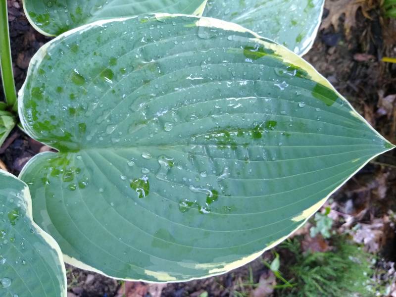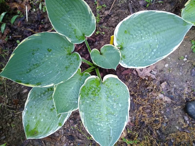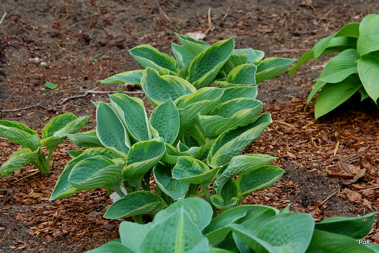 Hosta Lakeside Hazy Morn, to 6-letnia roślina, która po podziale w tym roku trafiła na słoneczne, ale zasobne i naturalnie wilgotne stanowisko. Rosnie tam z innymi hostami z serii Lakeside. jej wiosenny kolor jest wspaniały i ciężki do określenia, bo bardziej wpadający w lekki turkus. W Hosta Library jest nazwany, jako 'aqua blue'.