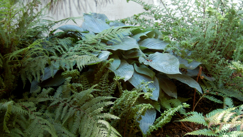Liście: podłużno-sercowate, niebieskiego koloru, który opisywany jest, jako zmrożony