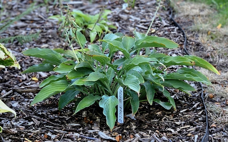 Rozmiar M wysokość ok 40- 45 cm, przy rozpiętości około 80 cm Liście: lancetowate, o rozmiarze 23 x15 cm, ostro zakończone i ładnie pofalowane; niebieskozielone, w pełni sezonu zielenieją Kwiaty: bladofioletowe (VII) Zalecane stanowisko: półcień/cień, w słońcu szybko zielenieje