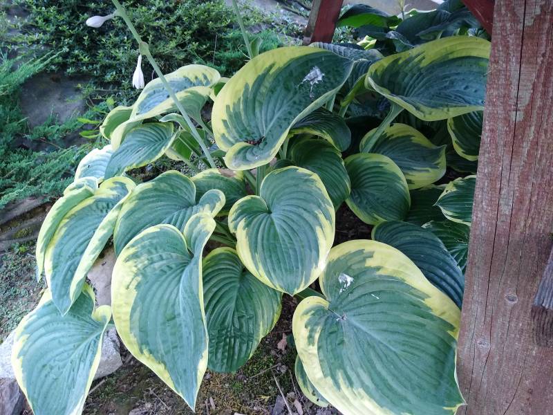 Hosta 'Big Beauty' rozpoczyna trzeci, lub czwarty sezon w moim ogrodzie. Jesienią trafiła z hostowego przedszkola na docelowe stanowisko. Gleba jest tu przepuszczalna, ale dobrze wzmocniona kompostem liściowym.