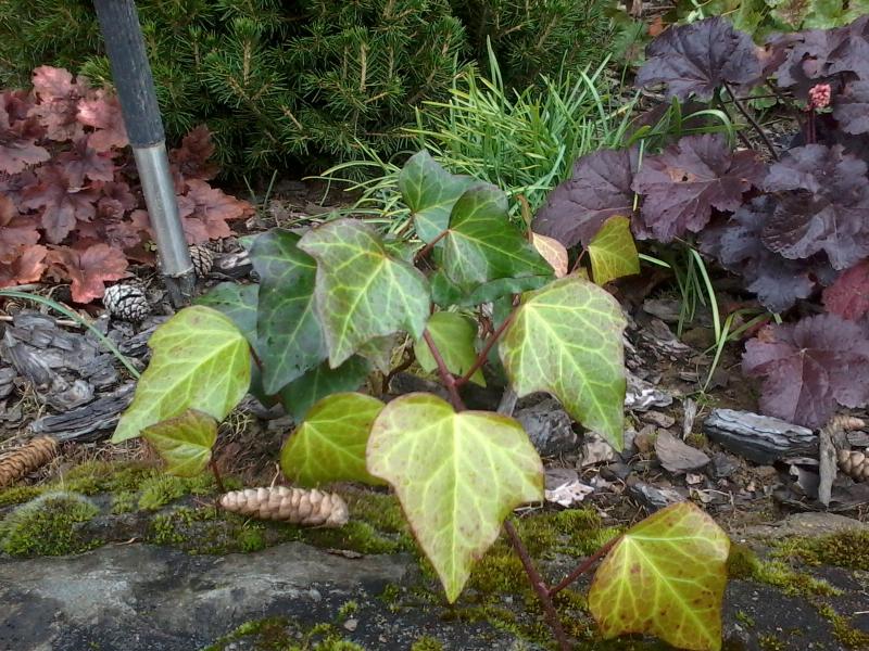 Bluszcz kolchidzki 'Sulphur Heart , gałązka przywieziona z Francji i ukorzeniona , od wiosny w gruncie .
