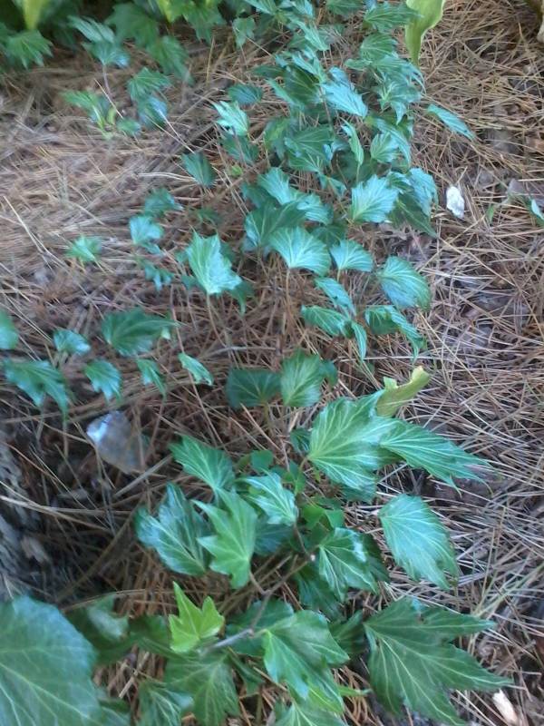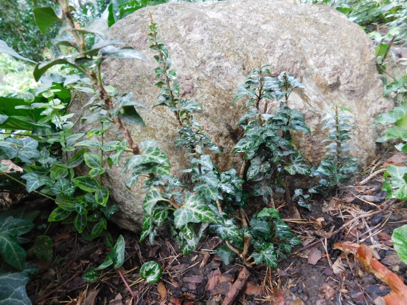 Na tym zdjęciu trochę widać charakterystyczny dla bluszczu 'Erecta' wyprostowany pęd.