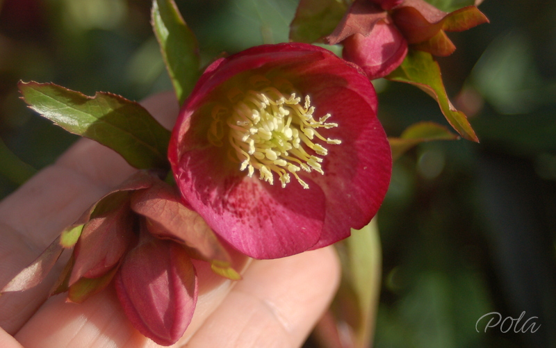W okres kwitnienia 'Dacaya' wchodzi już w listopadzie - także w moim dolnośląskim ogrodzie. Nieduże, mające średnicę około 3 cm, kwiaty zebrane są po kilka na rozgałęziających się, elastycznych i nieco zwieszających się łodygach. Płatki mają kolor ciemnoróżowy, ale każdy z nich ozdobiony jest w centrum paseczkami i kropkami o nieco ciemniejszym kolorze. Ogólnie cała kępa - nawet bez kwiatów - sprawia bardzo korzystne wrażenie głownie właśnie dzięki nadzwyczajnej urody liściom. Warto posadzić go na podwyższonej rabacie, aby w pełni móc cieszyć się jego drobnymi, ale licznymi kwiatami. Pisząc od siebie, to jeden z tych zakupów ciemiernikowych, z których jestem zadowolona w 100%!