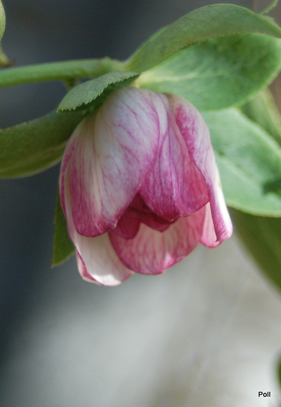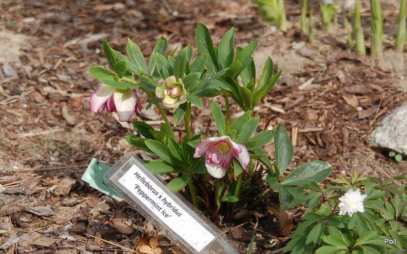 Pierwszy kwiat ciemiernika 'Peppermint Ice' nie jest zbyt wyrośnięty, jak u wielu innych odmian. Pogoda tej zimy, czy też zimo- wiosny nie sprzyja ciemiernikom. Szczerze pisząć, tak kiepskiego sezonu dla tych roślin, nie pamiętam.