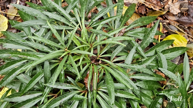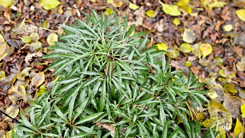 'Harvington Pewter', o miedzianoczerwonych przyrostach i bardziej stalowych liściach