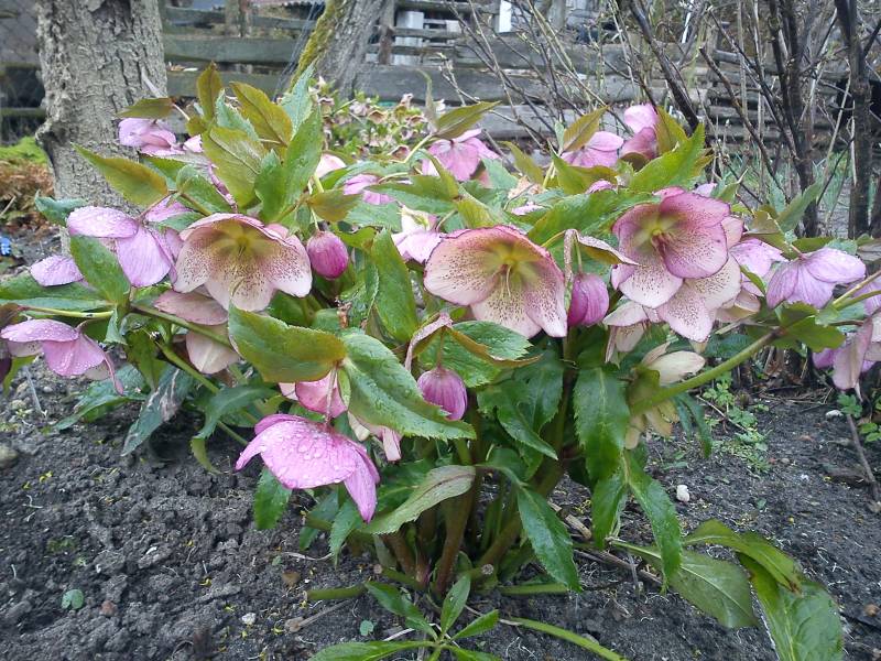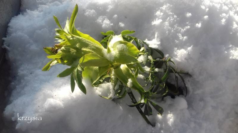 Helleborus niger z podziału od koleżanki w ubiegłym roku zakwitł na początku lutego, w grudniu przysypałam jego pąki kwiatowe liśćmi, ponieważ rok wcześniej nie osłonięte zmarzły.