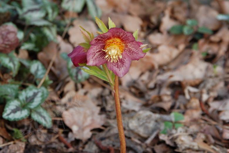 Helleborus x ericsmithii 'HGC Champion' z opatentowanej, Złotej Kolekcji Ciemierników (Helleborus Gold Collection® ) przekwitając,zmienia kolor kwiatów na oranżowoczerwone