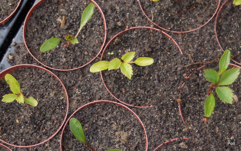 Moje wypikowane siewki wypuszczają trzecie i dalsze liście. Jutro przeniosę je pod zadaszenie, bo u mnie ciągle pada i obawiam się, ze mogą nie znieść takiej ilości wody w ich malutkich doniczuszkach.