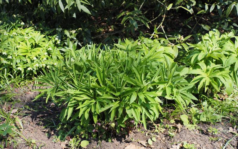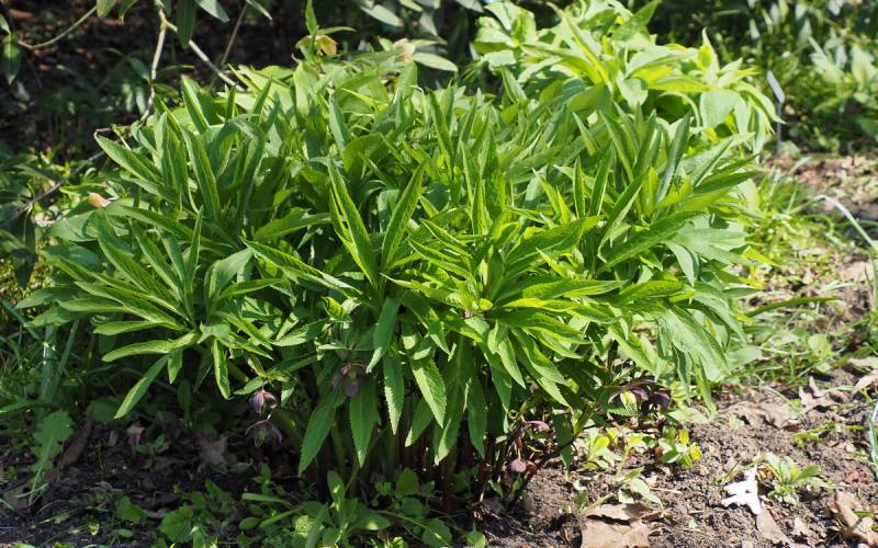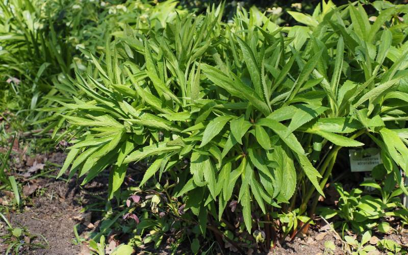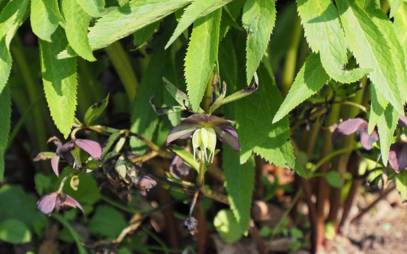 W Ogrodzie Botanicznym w Bremie swoim pięknym ulistnieniem moją uwagę zwrócił Helleborus atrorubens