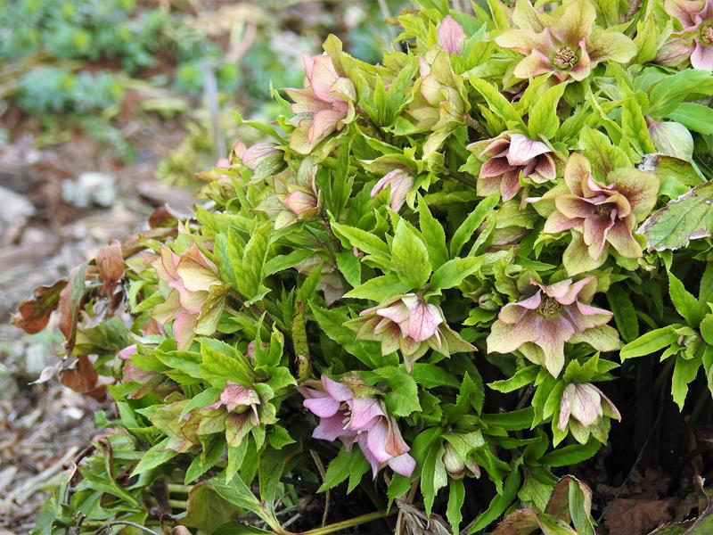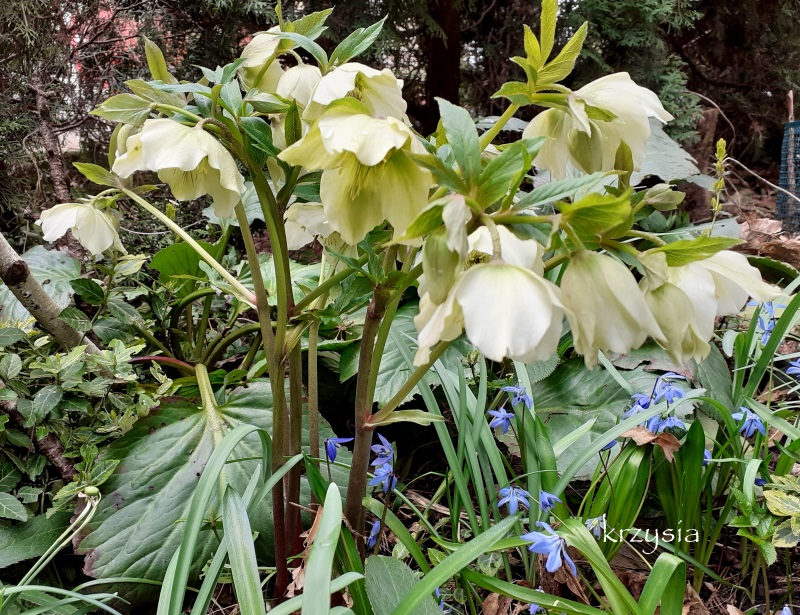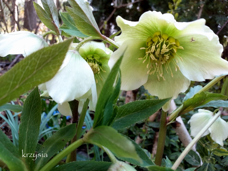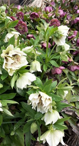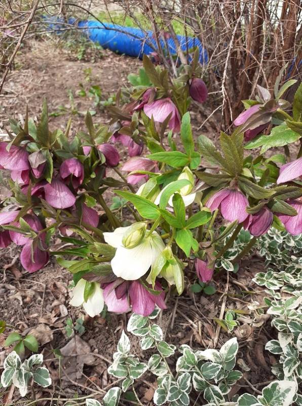 U mnie ciemierniki rosną w rządku przy murku z kamieni, co kilkadziesiąt cm. Biały, jeden z serii Double Ellen i jeden NN kwitną zadowalająco, a kilka słabo i nie wiem jaka tego przyczyna. Te lepsze i słabsze kwitnienia są naprzemienne, dlaczego