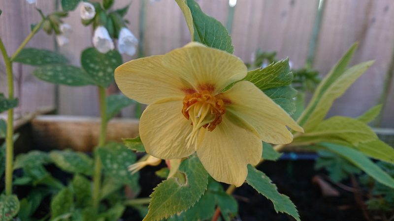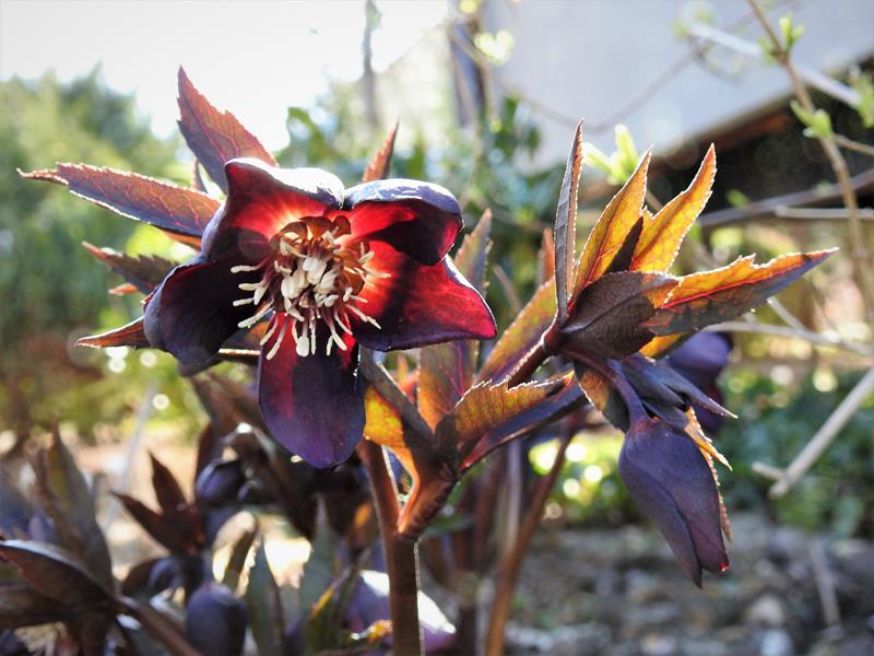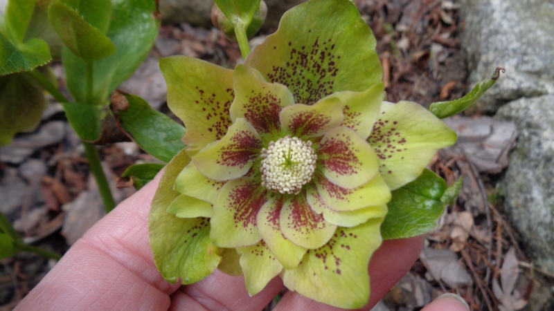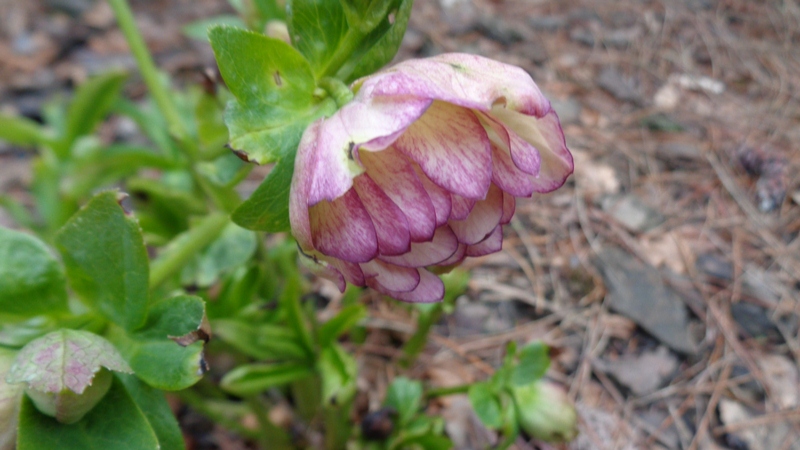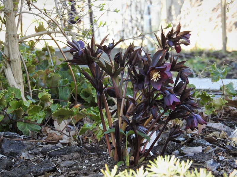 Tymczasem Helleborus 'Magic Leaves' , który jest sprzedawany jako H. nigercors, lub H. ericsmithii powoli kończy kwitnienie, ale za to rozpoczął rozwijanie ciekawych marmurkowych liści