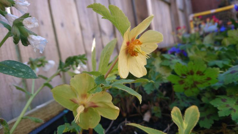 Ciemiernik orientalny Helleborus x hybridus, nie wiem, czy to koniec kwitnienia, wypuszcza nowe listki. Doczytałam, że czasem kwitnie całe lato.
