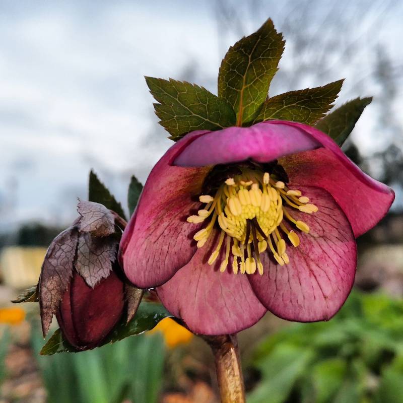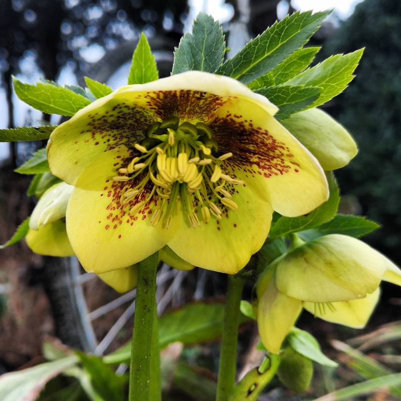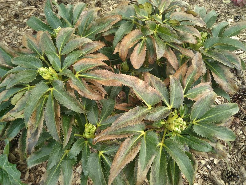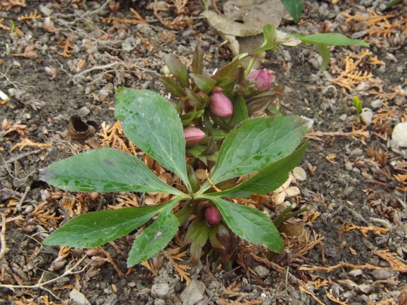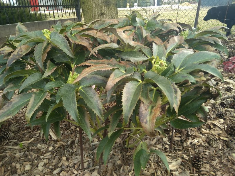 Brzydkie liście ma ciemiernik korsykański, ale pąki zapowiadają się obiecująco...
