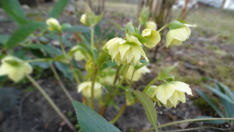 Pierwszy kwiat rozwija 'Double Ellen Yellow Spotted' ... fot. 05.03.2025