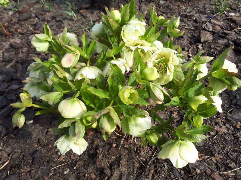 Starszy okaz rosnący na półcienistym stanowisku rozwija pierwsze kwiaty.
