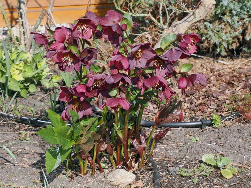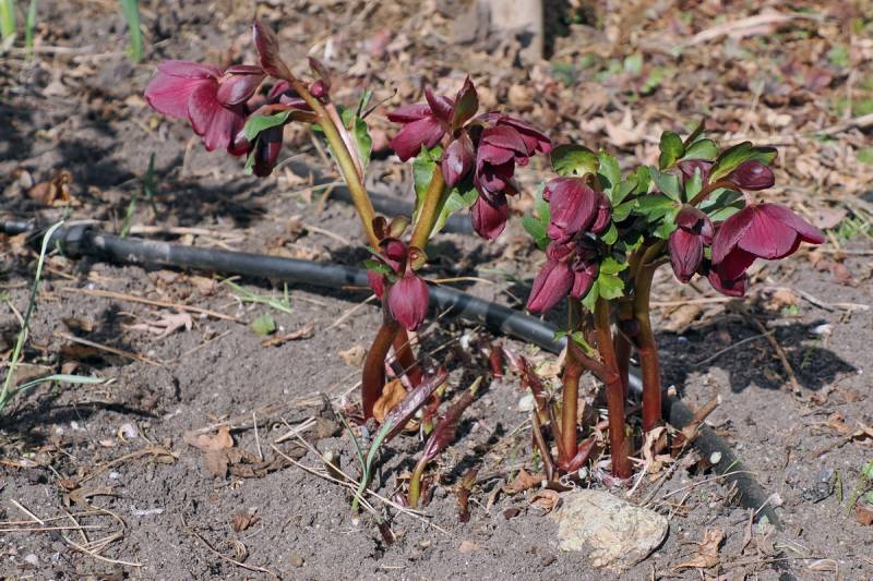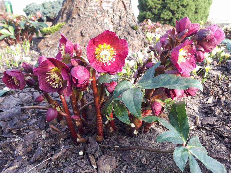 Nie jest to udany sezon dla mojego ciemiernika 'HGC® Ice N' Roses® Red'. Po wiosennym przymrozku złapał chorobę grzybową. W rezultacie połowę pędów kwiatowych już wycięłam krecigl