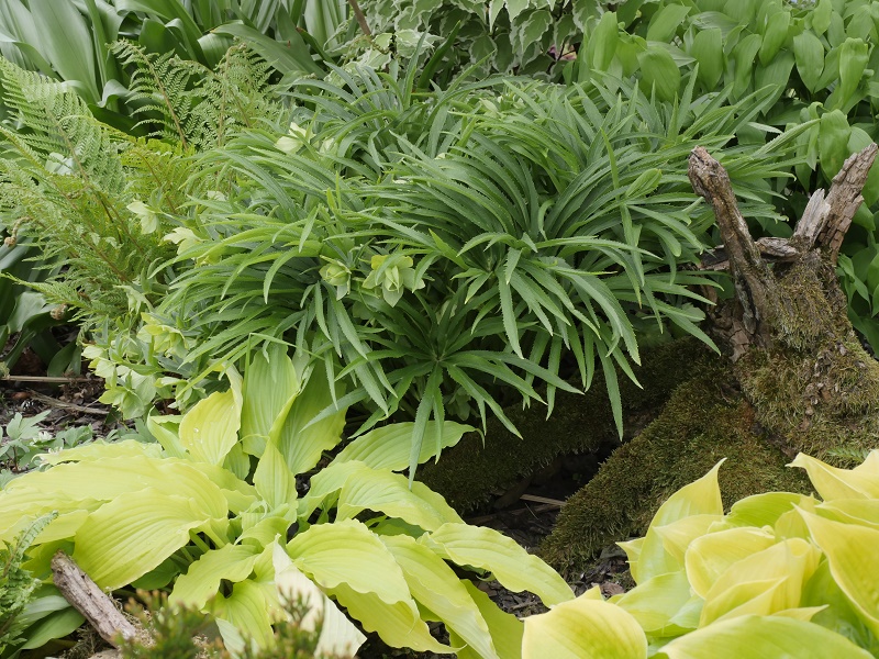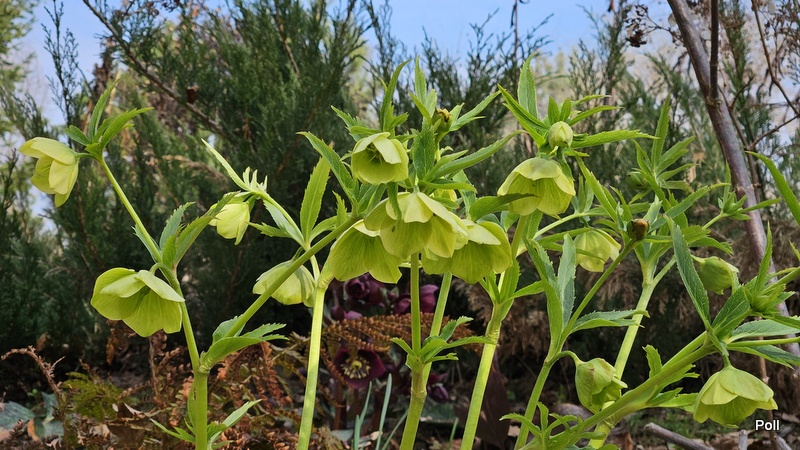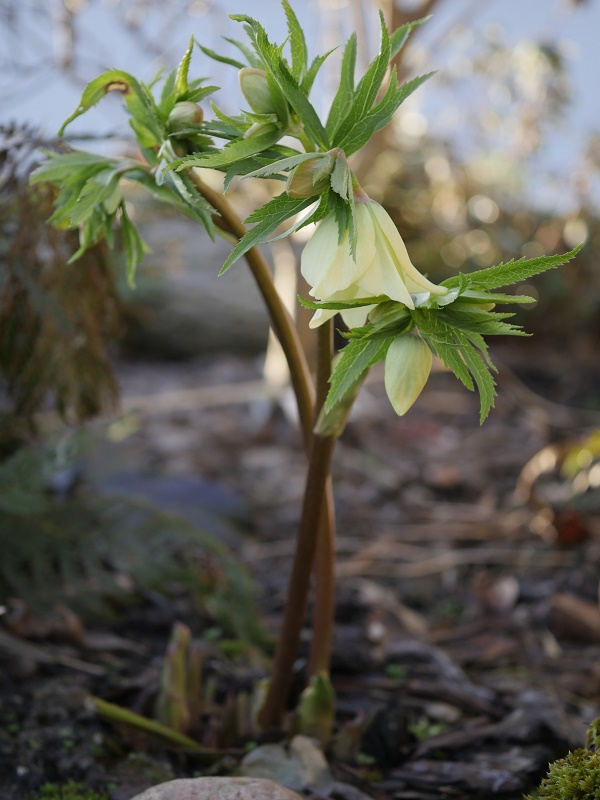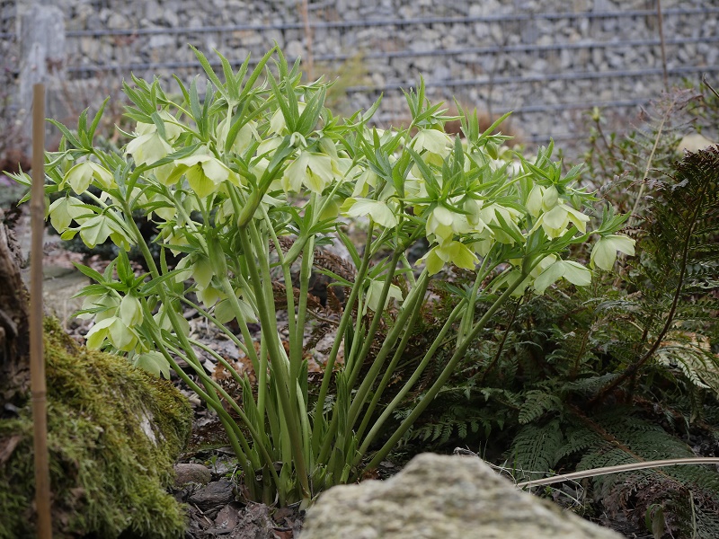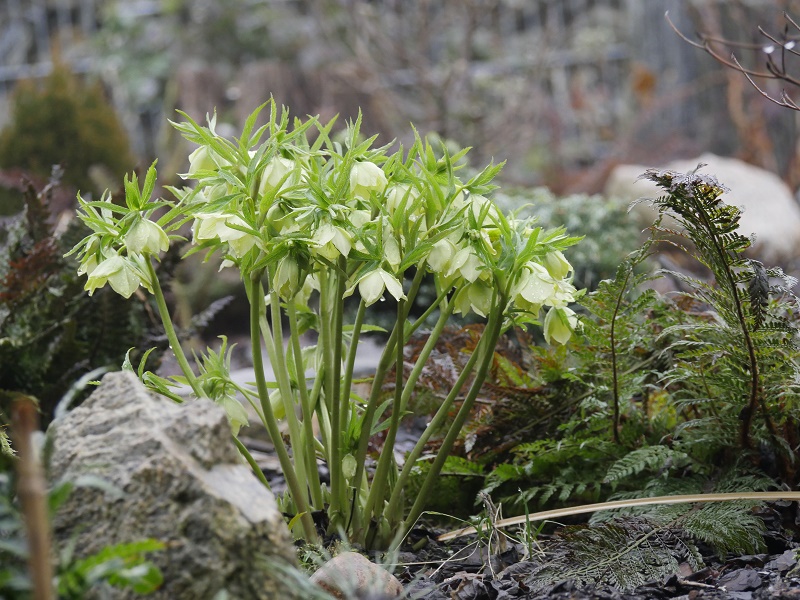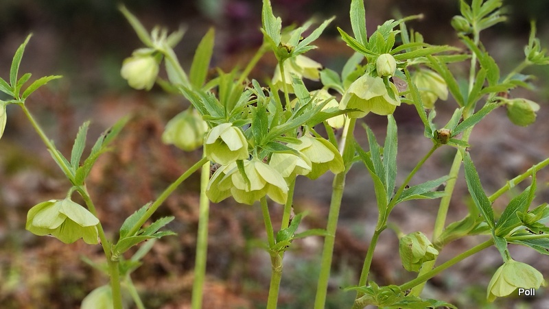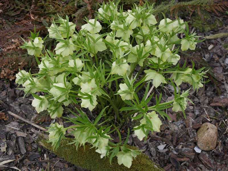 Na cieplejszych terenach zachowuje zimozieloność, ale w moim dolnośląskim ogrodzie całkowicie zanika, gdy temperatura spada poniżej -5C, może -6C. Budzi się i wypuszcza nowe liście na przełomie lutego i marca. Zwykle dorasta do wysokości około 30- 35 cm, ale znane są egzemplarze osiągające 50-60 cm. Liście są złożone z pięciu, sześciu, lub siedmiu 'palców', a każdy z nich jest- jak to u ciemierników wielodzielnych- podzielony na kolejne, mniejsze. Kwiaty osadzone są po kilka na pędzie i nie są zbyt ozdobne- mają żółtawozielony kolor i są raczej niewielkiej średnicy, bo około 5 cm. Ich atutem jest zapach, który nie jest wyczuwalny z daleka.