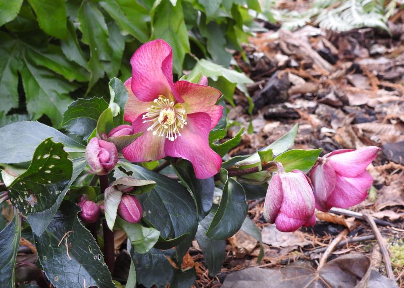 Helleborus x HGC 'Spring Promise Maggy'... Jeden egzemplarz otworzył kwiaty bardzo nisko, ale na całe szczęście widzę także pąki: