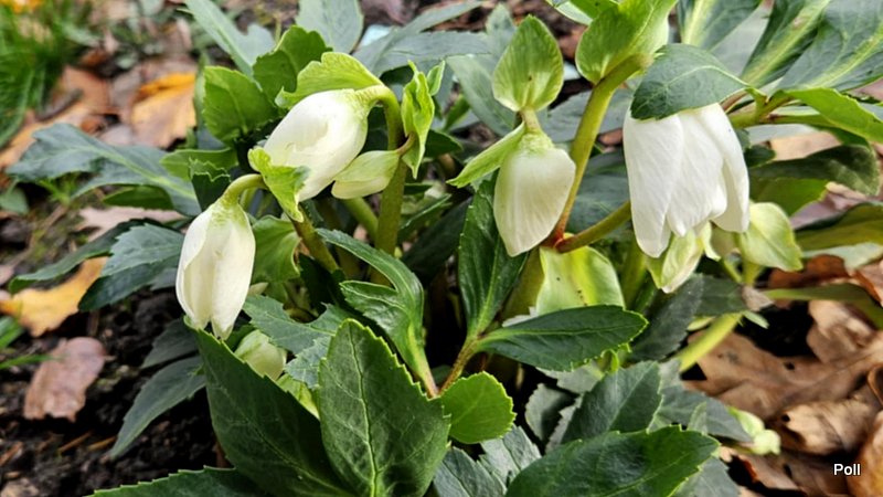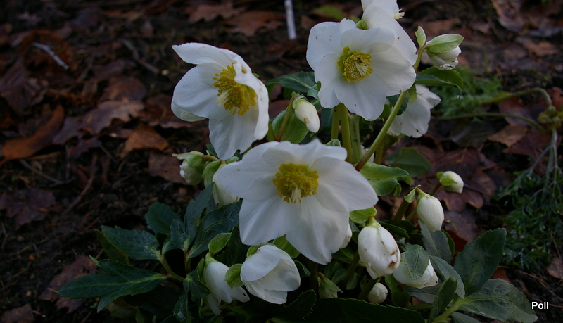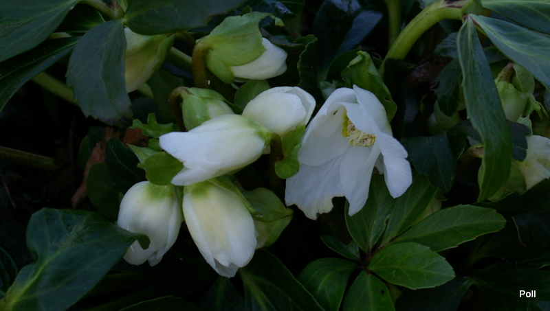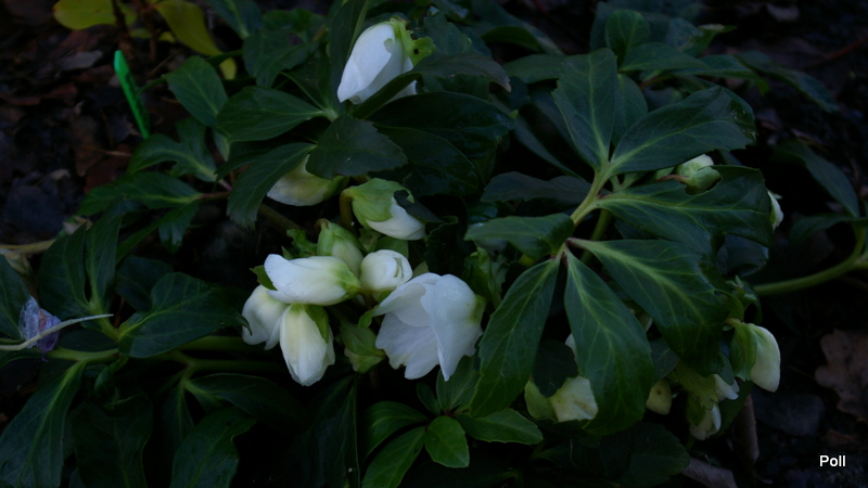 Helleborus niger ‚ HGC 'Jesko' dopiero teraz wszedł w pełnię kwitnienia:
