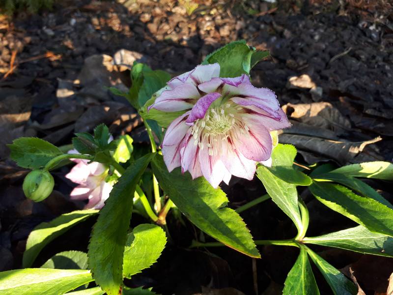 Ciemiernik iburgski (Helleborus x iburgensis) 'HGC Ice N' Roses Benotta' fajnie przyrasta na stanowisku wiosną półcienistym, później cienia ma sporo.