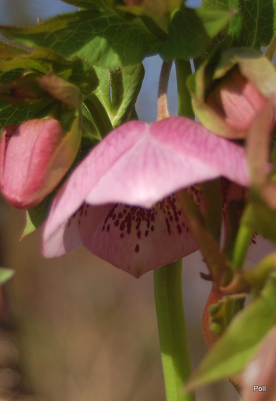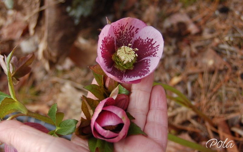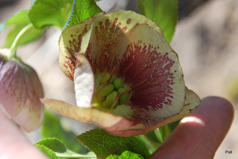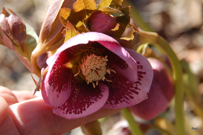 Ciemiernik SP Charlotte rozwinął kwiaty... Zaświeciło słońce, więc pszczoły, mimo wiatru i chłodu, latały, jak oszalałe. Z ubiegłego 'miotu' wyrosło kilka siewek, ciekawe o jakich cechach.