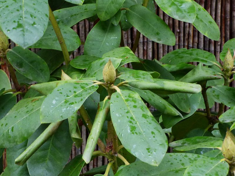 Dzisiaj, wizytując ogród, zauważyłam na rododendronie Shamrock mnóstwo takich ciemnych plam...