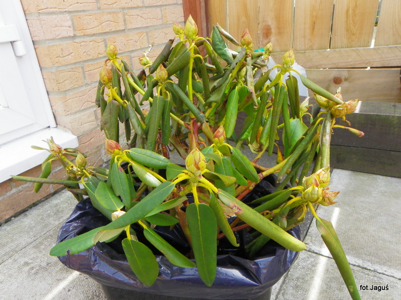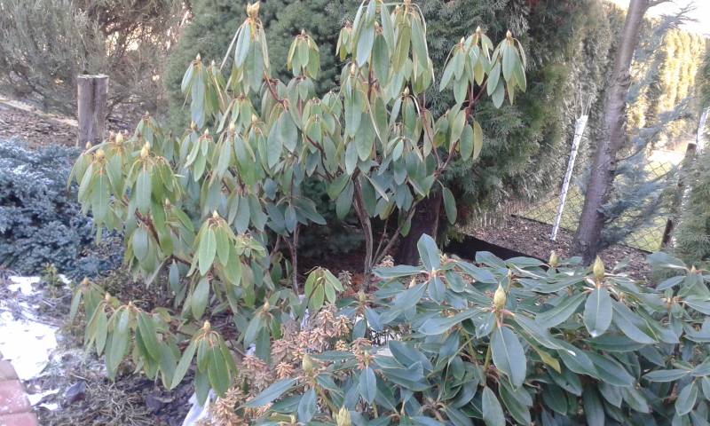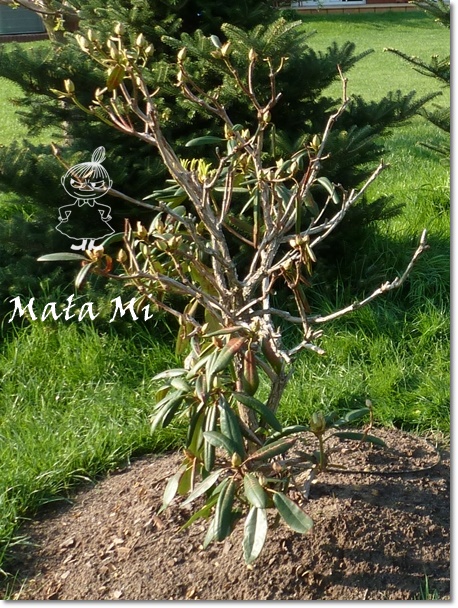 W ubiegłym roku sadząc rh od razu podsypałam granulowanym obornikiem końskim, w tym nowo posadzonych jeszcze nie nawoziłam, mam zamiar zastosować dolistnie Magiczną Siłę dopiero po kwitnieniu. Rośliny dobrze przezimowały (młode rh i japonki okryłam włókniną), mają ładne, zielone liście.