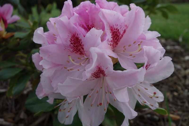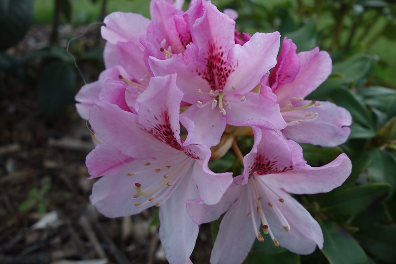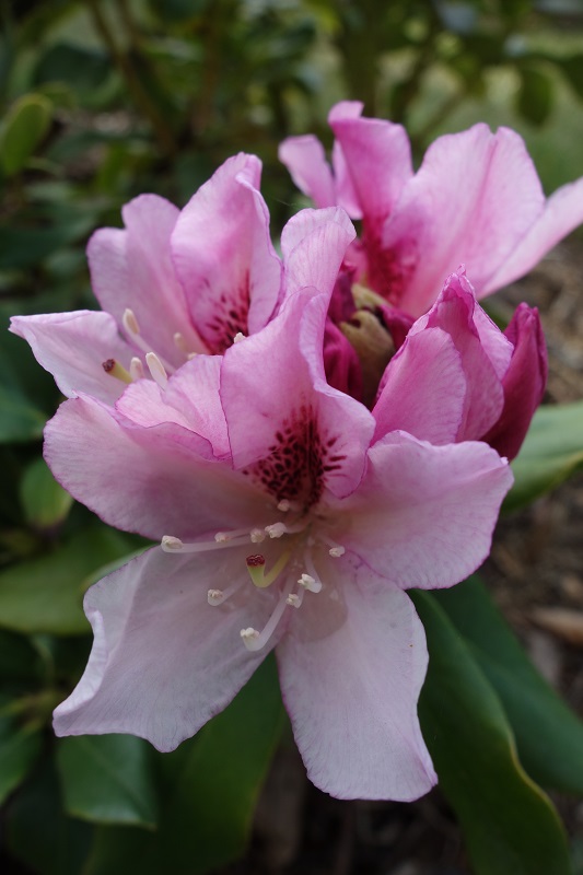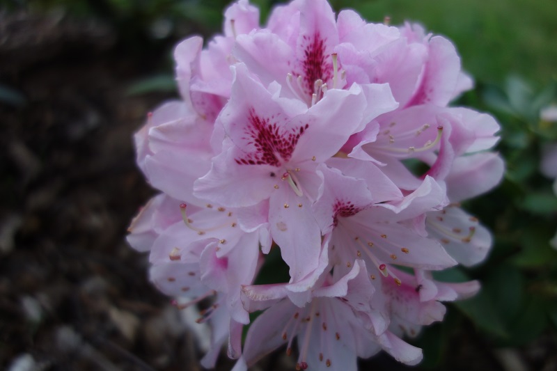 Tomku... 'Pink Delight' Twoja azalia na pewno nie jest... tą widziałam w Wojsławicach... w pełnym słonku jej plamka jest bardzo energetycznie a przede wszystkim - jak widać poniżej - ona jest tak rozlana po górnym płatku, że nie sposób wyodrębnić cętek... natomiast na Twojej azalce te cętki są dostrzegalne.