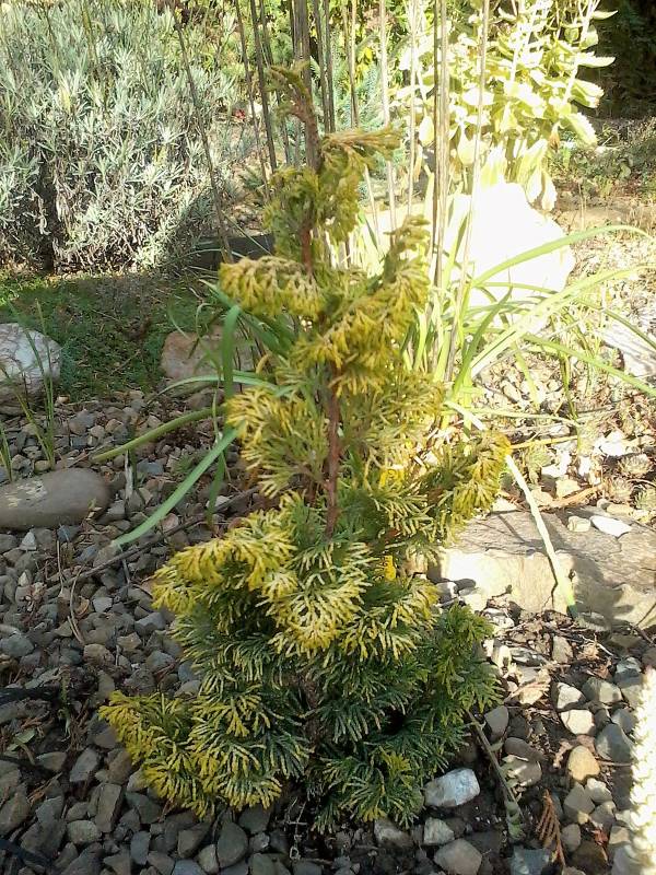 Pawle uwierz mi ,ale cyprysika tego mam z urwanej w szkółce 5 -cio centymetrowej gałązki , była już urwana więc właściciel pozwolił mi ją zabrać .Wsadziłam ją na skalniaku w tą moją glinę pod kosodrzewinę kilka lat temu ,może 8 .Jak zobaczyłam może po 4 latach ,że ma z 30cm ,przesadziłam .W tym miejscu rośnie 4 lata ,bardzo przyśpieszyła ma ponad 2 metry .Do tamtego roku rosła wzorcowo ,czyli małe przyrosty .W tamtym roku już przyrosty na czubku zrobiły się większe ,niż te na dole ,czy w połowie ,z chęcią bym je ciachnęła ,ale boję się ,że wtedy to zacznie się ten czubek rozrastać .Nawet nie wiedziałam jaka to odmiana ,ale myślę ,że na 100 procent jest to 'Contorta'