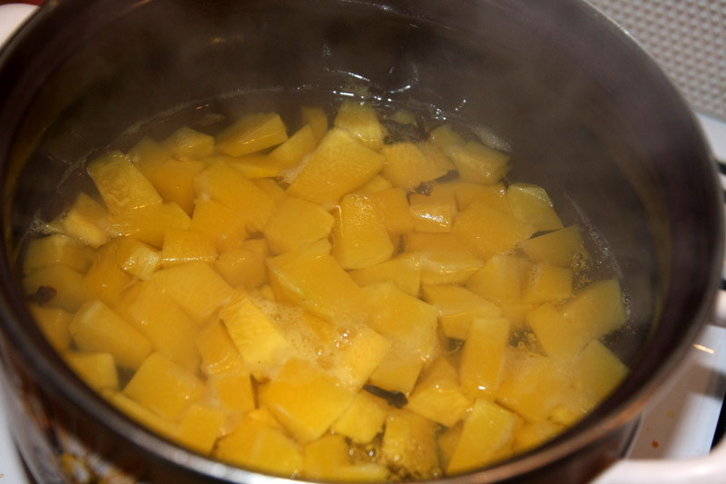 do puree najlepsza jest właśnie dynia Hokkaido nie tylko dlatego, że ma intensywne zabarwienie i mącznisty miąższ ale także nie trzeba jej obierać.
