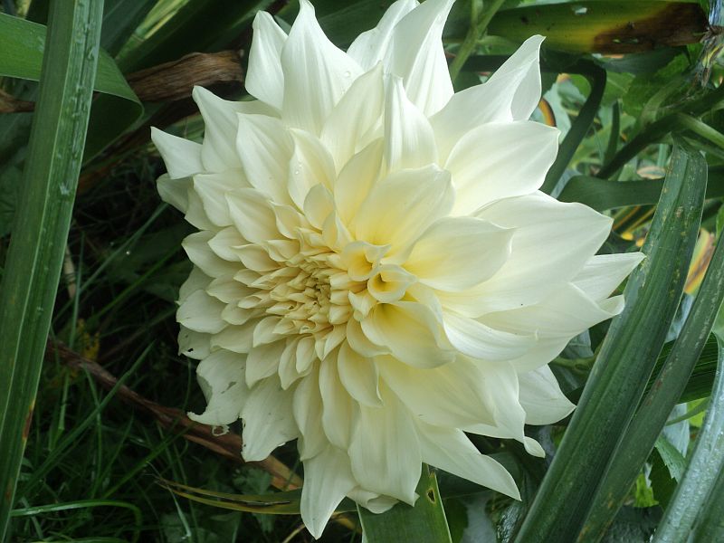 Obficie kwitnąca dalia o dużych kwiatach, pędy kwiatowe sztywne