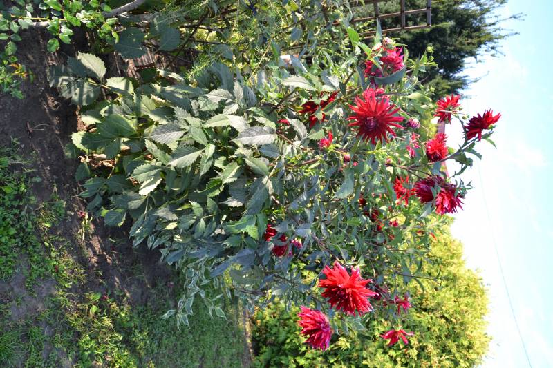 Dalie tego typu są raczej sierpniowe, jak podpędzisz, to możesz już mieć na początku lipca. One są niewysokie. Miałam Senior's Hope - zakwitł w sierpniu, ale Wine Eyed jill kwitła pięknie na początku lipca.
