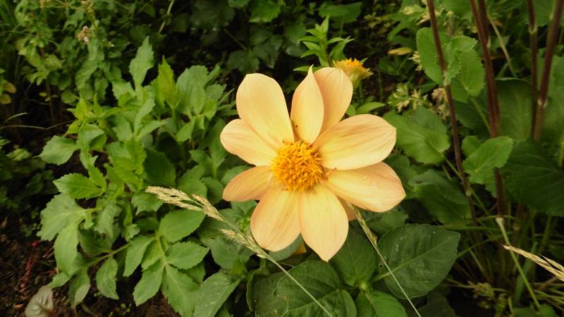 Trwająca niemalże nieprzerwanie od początku maja susza powoduje, że większość dalii wygląda jak Bahama Apricot z załączonego obrazka- 30cm od ziemi udało jej się urosnąć :( , a nawet nie tyle, bo linijka wbita jest w grunt..