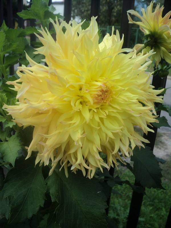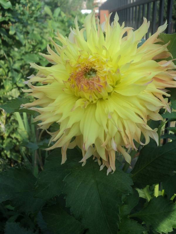 - czerwone końcówki widoczne w początkach kwitnienia , kończy sezon jako żółta dalia