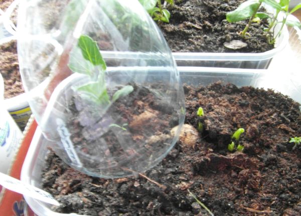 CAFE AU LAIT - sadzonkji podlane nakrywam kapturkami z uciętych butelek- dopóki nie staną o własnych siłach "na bacznośc". ; )