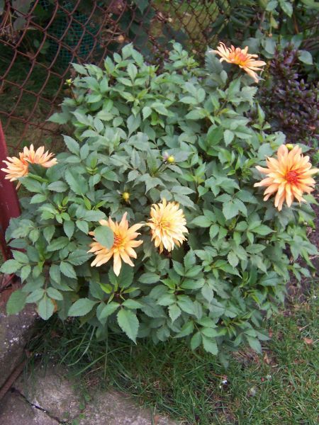 Dalie Dinner Plate czyli talerzowe wysokości około 80-100 cm . "Sadzenie przy płocie "chodzi mi o to czy mogą być przy samym płocie bez odstepu od murku , płotu.