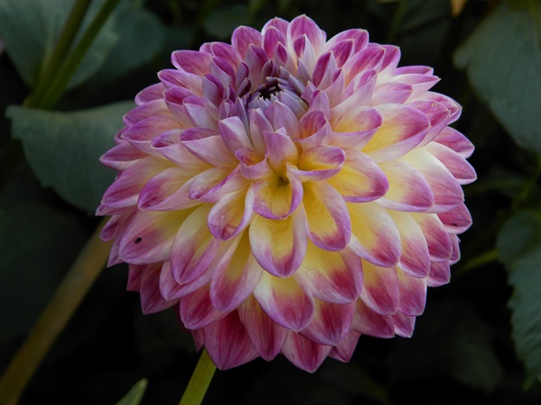 W tym roku mam już tą urocza dalię. Pomimo kontrastowych kolorów bardzo mi się podoba. Tworzy zgrabna kulkę, ale o zaostrzonych płatkach.