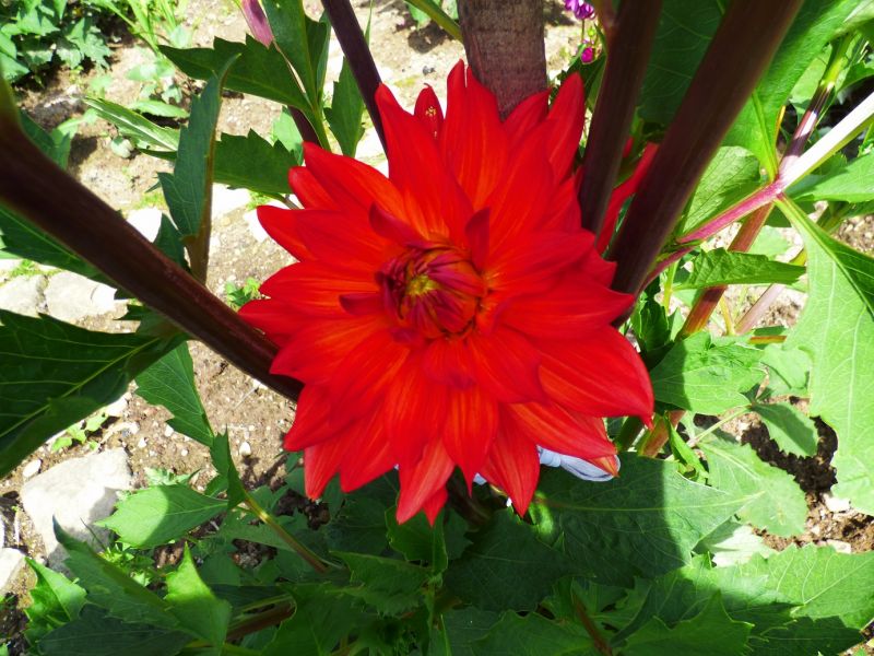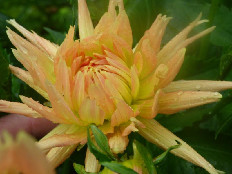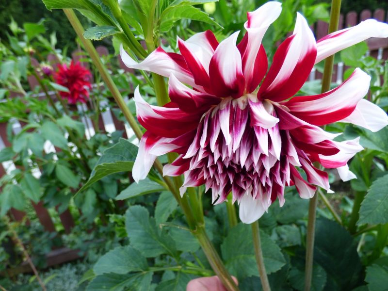 Dalia Kingyo Hime - mam od Stanisława Lipienia. Nie znalazłam nigdzie w katalogach, możliwe, że brzmi nieco inaczej. Ciekawe, bo kolejny kwiat wybarwił się na czerwono - uwielbiam takie niespodzianki - dalia zmienną jest!