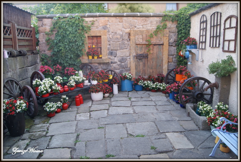 A jeżeli mówimy o dekoracjach w miejscach publicznych - to będąc jakiś czas temu w Lwówku Śl. trafiłam na fajną pizzerię z niesamowitą werandą i malutkim ogródkiem, w którym jako ozdoby wykorzystano kanki, garnki i inne emaliowane gary :) Urocze miejsce.