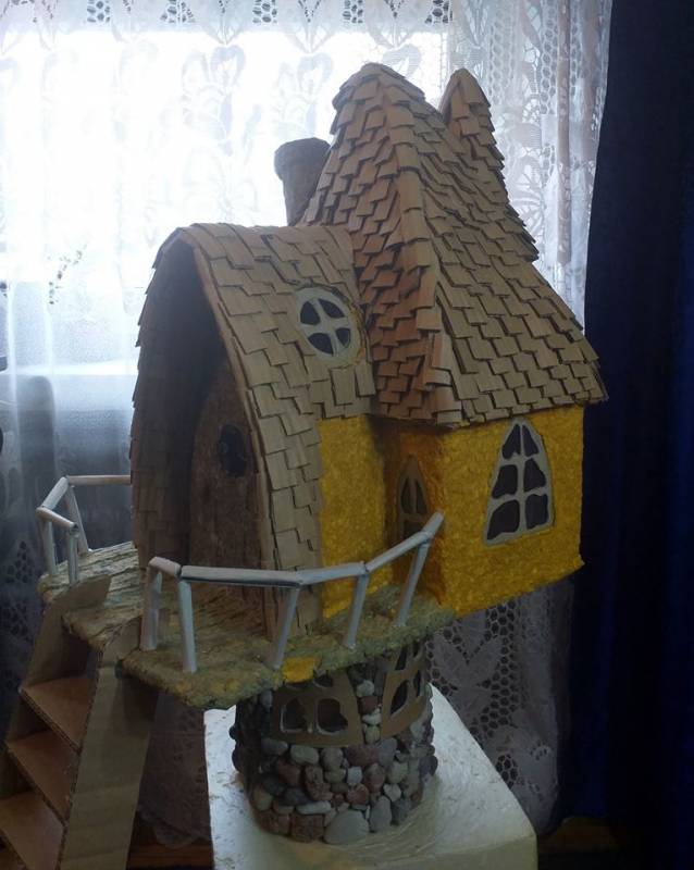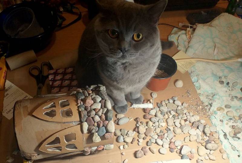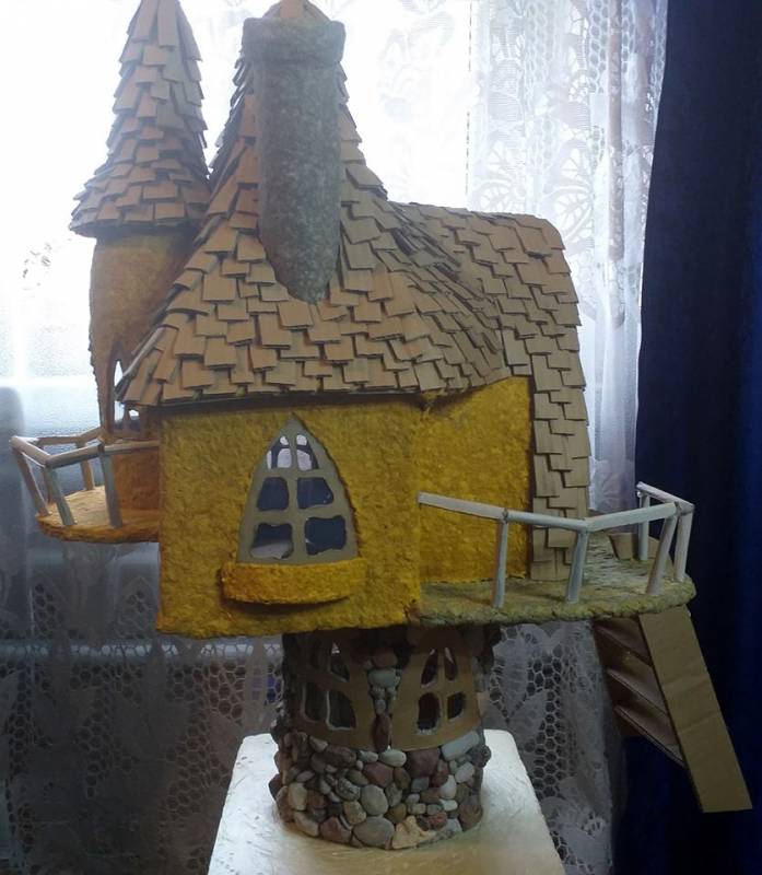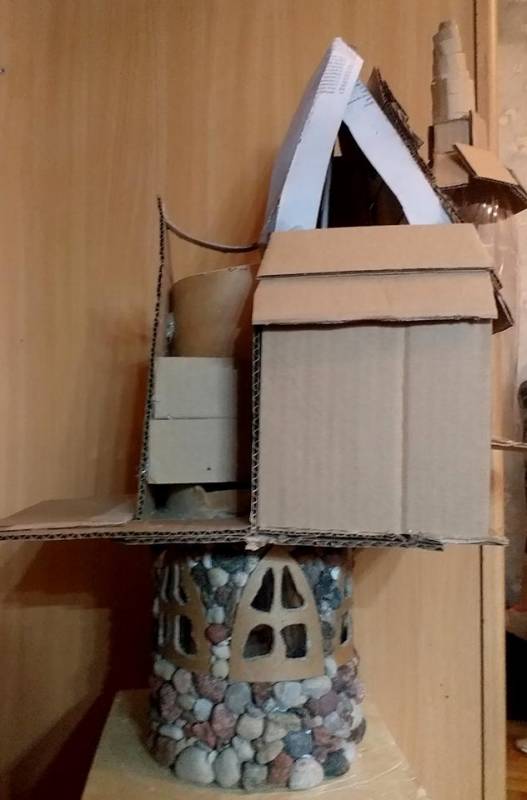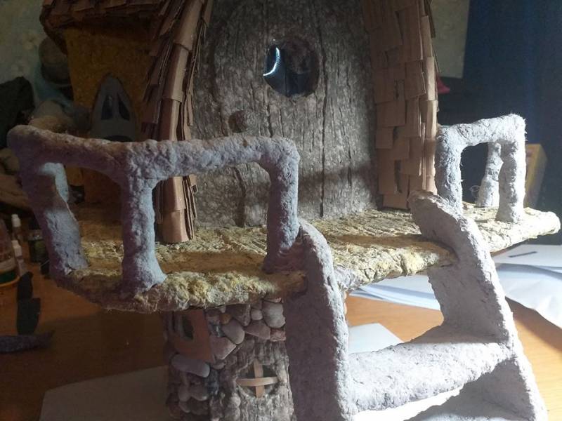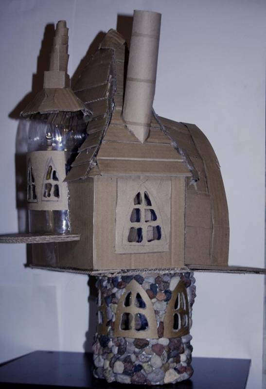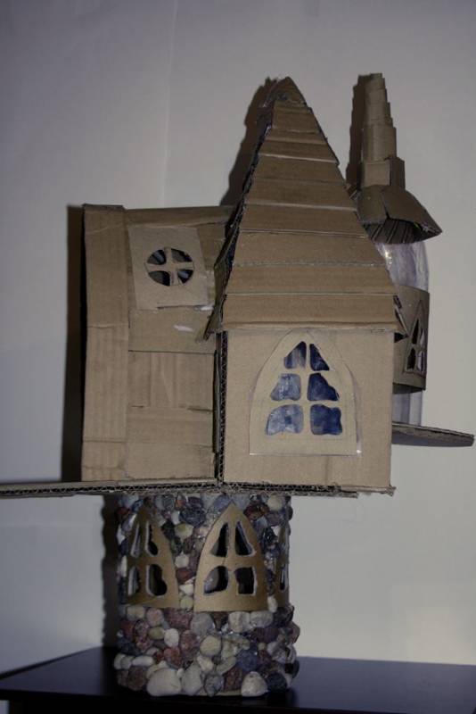 Ramy okien póki co zrobione są z grubej tektury na którą nakładać będę dopiero papkę celulozową, którą widać już na drzwiach zameczku