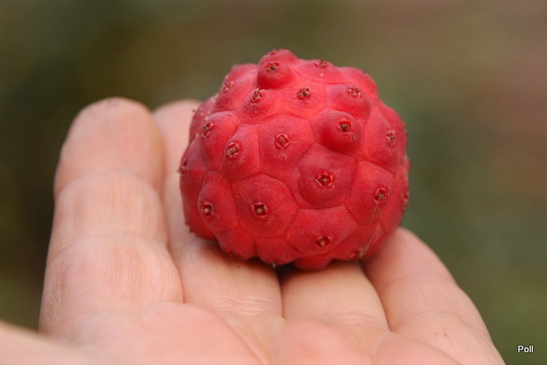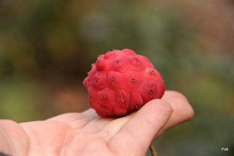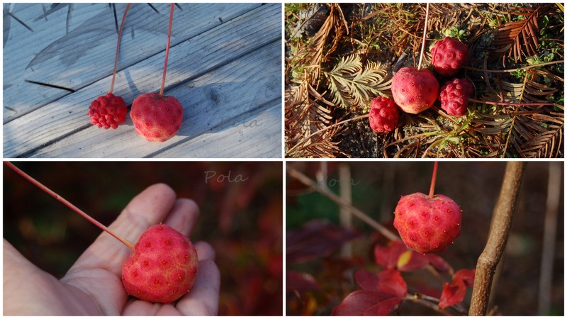 Owoce: duże, ok 3,5 cm., czerwone, utrzymują się na roślinie do późnej jesieni.